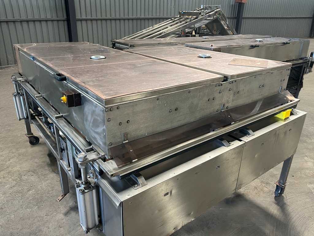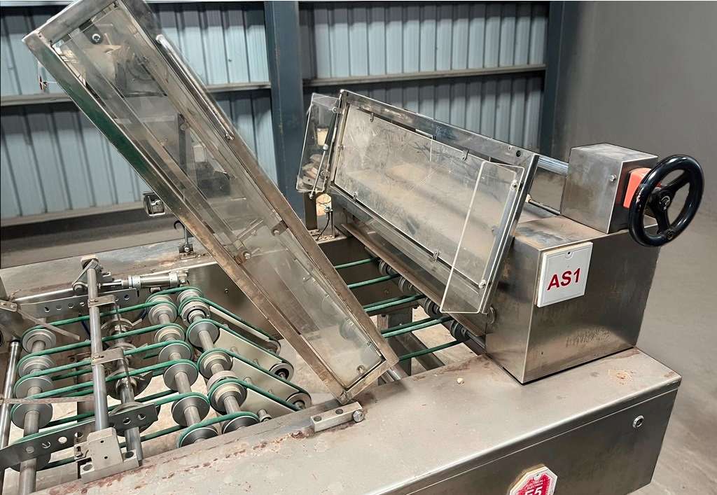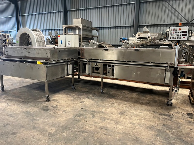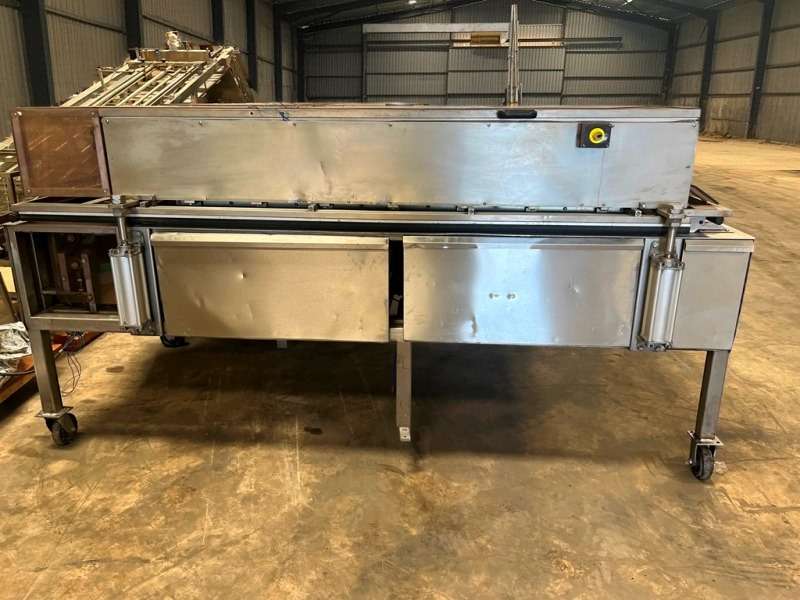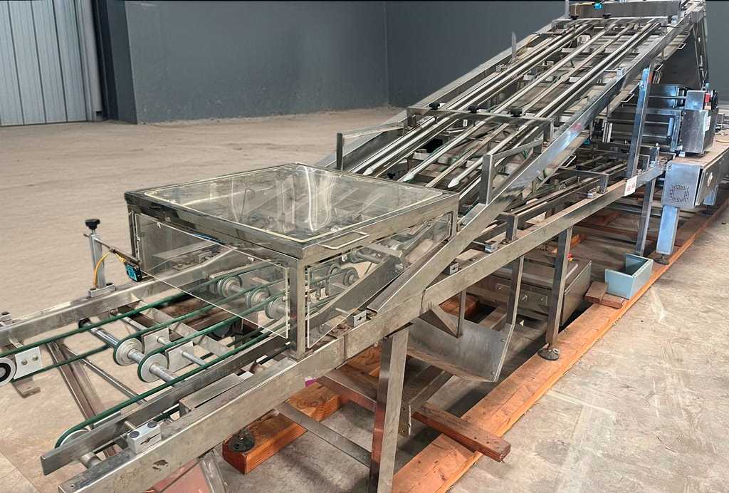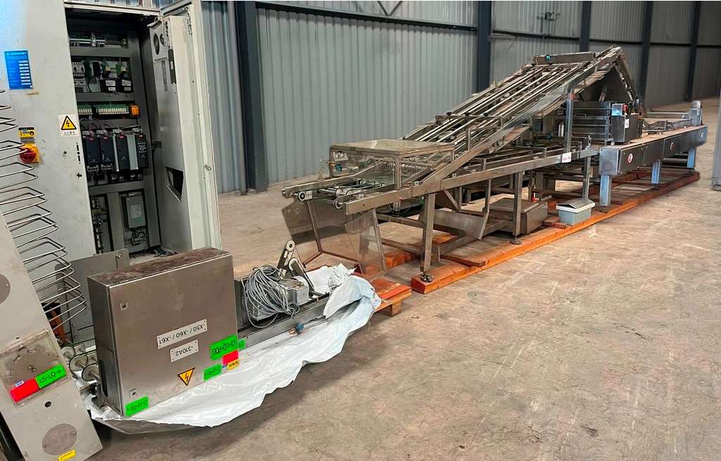 AB Controls, 813cm/27 ft. long, 50cm/19.5 in. wide infeed, 54cm/21 in. belt,