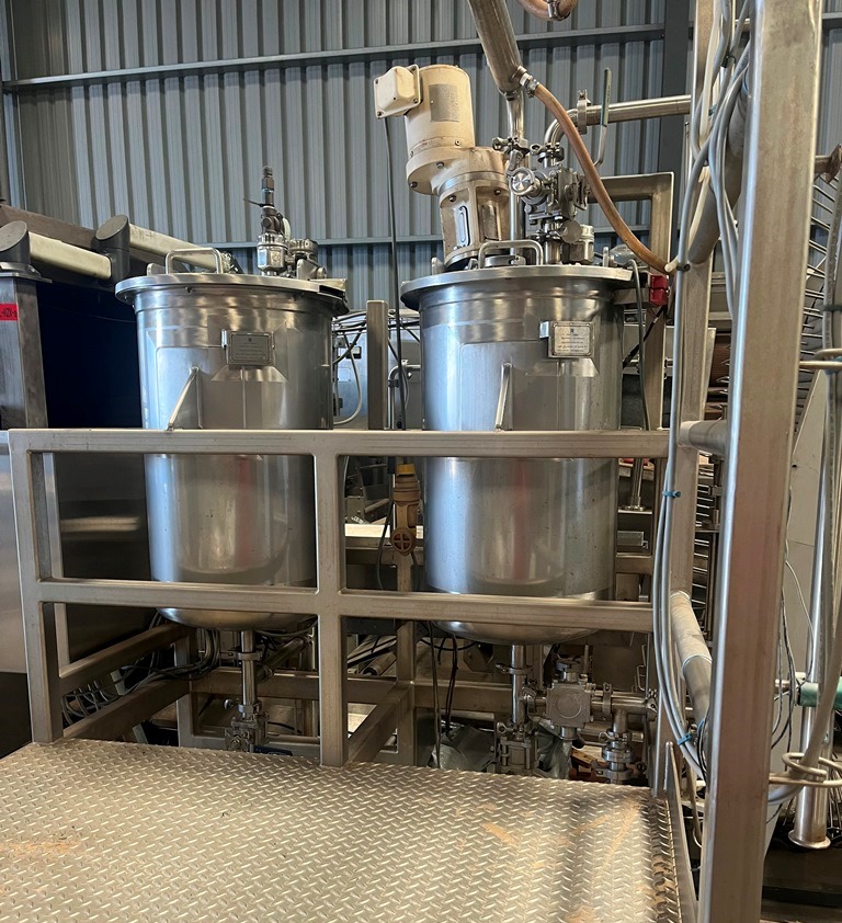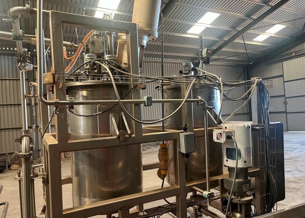 Degrees C, with level sensors, flow meters, SS control box, mounted on a SS
